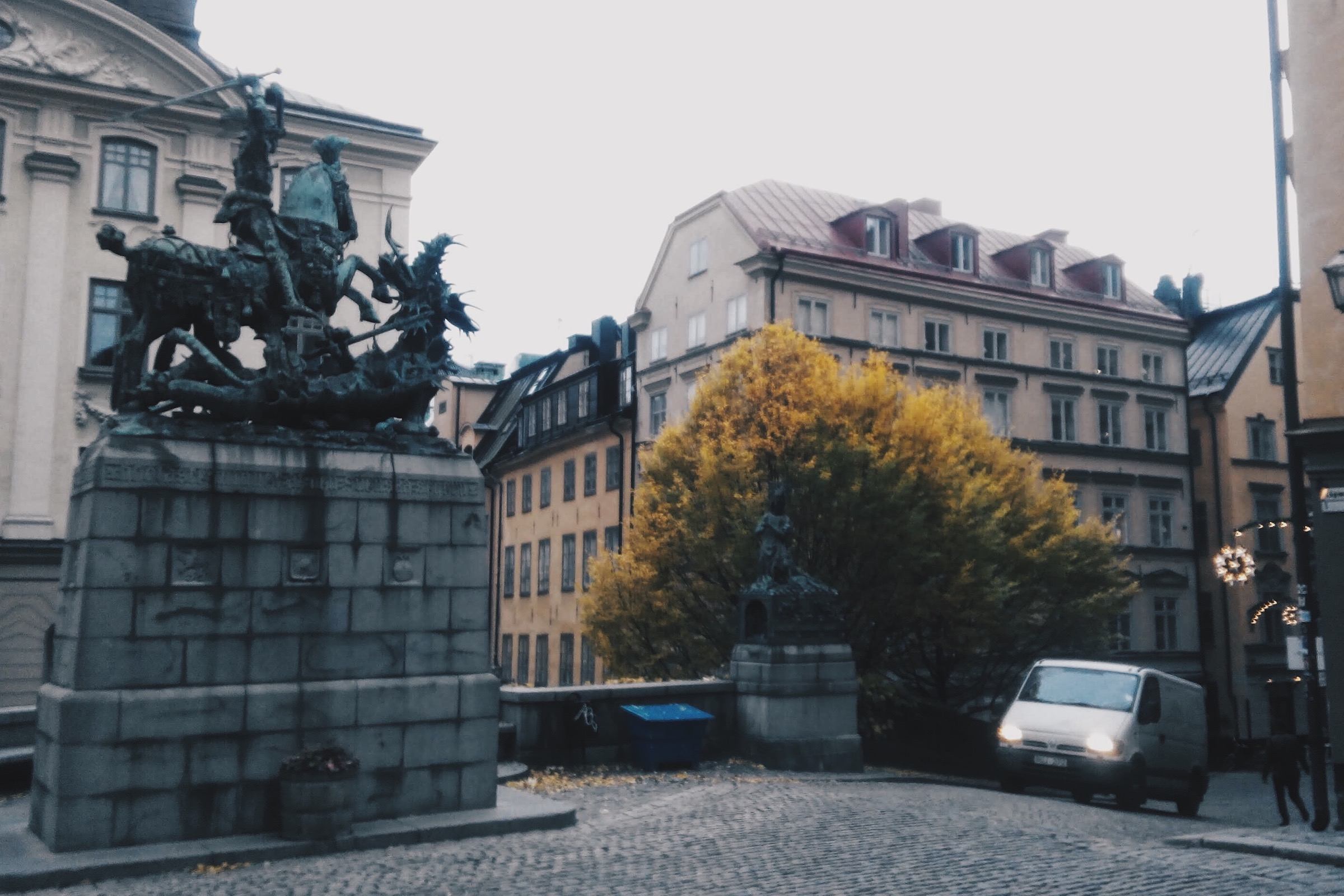 Di salah satu sudut Gamla Stan, beberapa pohon masih berdaun kekuningan.