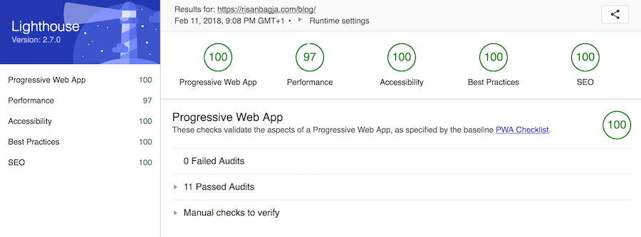 I’m really happy with my current blog setup. The look and feel are still simple. The performance is also better. It easily scored 100 on almost every Lighthouse matrix categories.